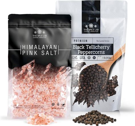 The Spice Lab Pink Himalayan Salt And Pepper Combination Gift Pack (Coarse Salt + Peppercorn Bags)