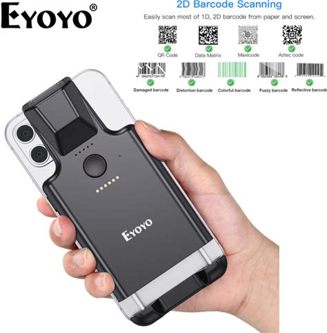 Eyoyo 2D Back Clip Barcode Scanner Wireless Phone Back Clip 1D QR Code Reader