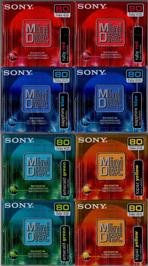 8 Sony MD Minidiscs Color Collection 80Mins W Shock Absorbing Mech Sealed New