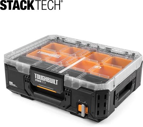 Toughbuilt Stacktech Rolling Tool Box, Heavy-Duty Portable Tools Organizer, 250 Lb Capacity - Stackable And Waterproof Toolbox Storage System With Lockable Lid And 9-Inch All-Terrain Wheels