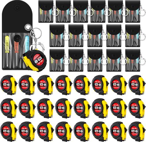 Mootycapa 6 Pcs Mini Screwdriver Keychain Tape Measure Keychains Set Mens Gift Bulk Retractable For Adult Xmas Tool Birthday Party