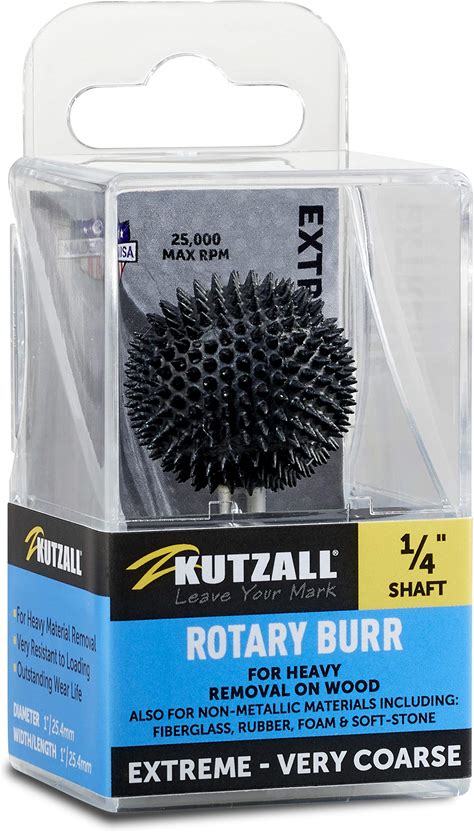 Kutzall Extreme Sphere Rotary Burr 1/4" Shaft, Very Coarse - Wood Carving Bit For Bosch, Dewalt, Milwaukee Tools. Abrasive Tungsten Carbide, 1" (