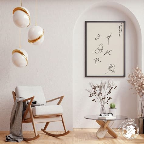 Set Of 3 Taguchi Tomoki Prints | Three Asian Crane Posters, Chinese Artwork, Abstract Shapes Painting, Bird Gallery Wall Art