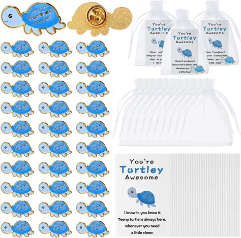 Juexica 30 Sets Employee Appreciation Gifts Bulk Positive Turtle Pins You're Awesome Inspirational Notecard Thank You Gift For Coworker Staff