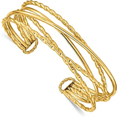 14K Yellow Gold Polished And Textured Multi Tube Cuff Bangle