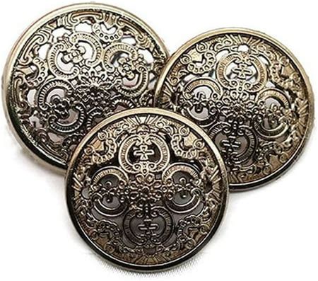 5 Pcs Hollow Metal Button Black Sliver Gold Buttons Round Decorative Button For Clothes Sewing Accessories (Antique Gold, 23Mm)