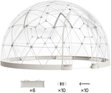 12 7.2ft Garden Dome Tent With 2Lights, Upgraded Weatherproof Garden Geodesic Dome Greenhouse Bubble House Camping Tent With Transparent Cover For 2-6 Person And Window For Outdoor, Party, White
