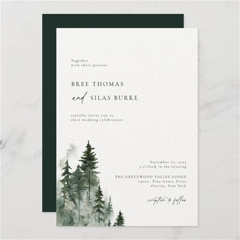 Rustic Elegant Watercolor Pine Tree Forest Wedding Invitation