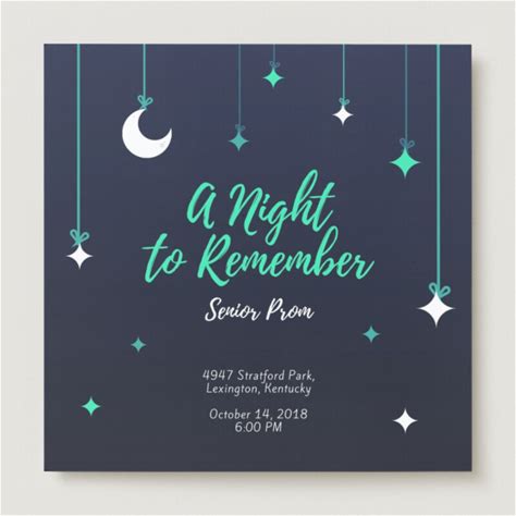Canva Starry Night Prom Invitation, Green/Blue, Matte Finish, Pack Of 50, 14cm X 14Cm, Standard Paper, Premium Paper, Deluxe Paper