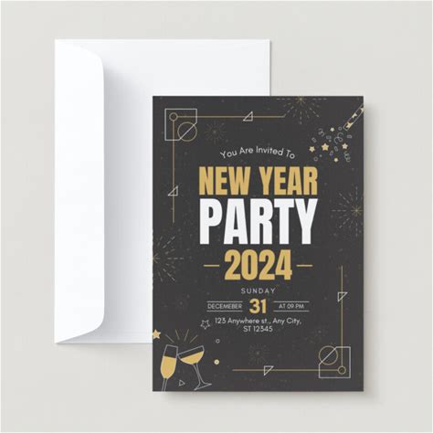 Canva White, Modern New Year Party Invitation Portrait, Black/Gold, Matte Finish, Pack Of 50, 5" X 7", Premium Paper, Deluxe Paper, Hemp Paper
