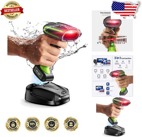 Tera Pro (Extreme Performance) Industrial Wireless Barcode Scanner 2D QR 1D Bar Code Reader 2.4G Wireless 2500Mah Compatible With Bluetooth Drop Resistant For Windows Mac Android Ios Model 8100 Green