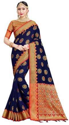 Sarees For Women Banarasi Art Silk Woven Sari - Indian Ethnic Gift Diwali Festival Saree With Unstitched Blouse Navy Blue
