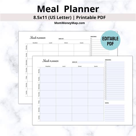 Weekly Menu Planner, Editable Lunch Menu Template, Instant Do