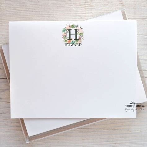 Classic Monogrammed A2 5.5" X 4.25" Flat Note Card Set With Envelopes