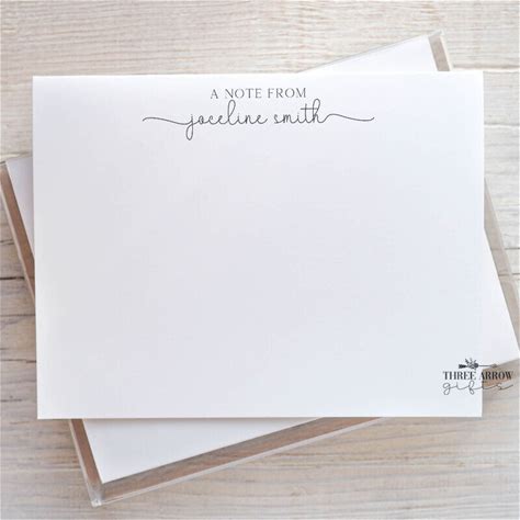 Personalized Script A Note From A2 Flat Note Card Set Of 12 W/Envelopes