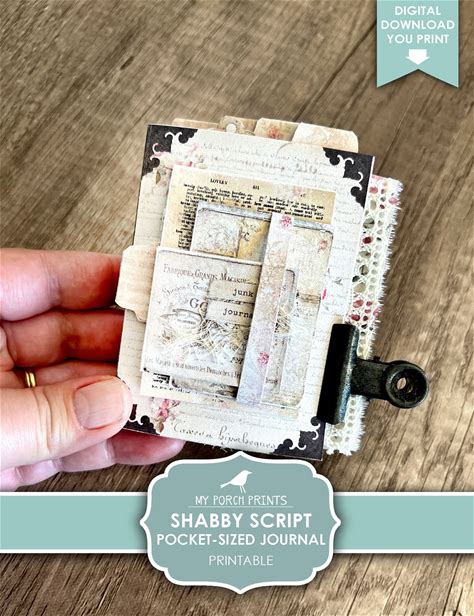 Shabby Script Pocket Sized Junk Journal Kit, No-Sew, Printable, Size, Mini Book, Shabby, Pink, Miniature, My Porch Prints, Digital Download
