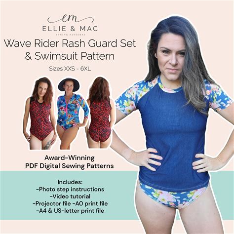 Wave Rider Rash Guard & Swimsuit Sewing Pattern: Raglan Sleeves (PDF Pattern)