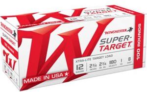 Winchester Super Target Xtra-Lite Target Load 12 Gauge 2.75in 1Oz 8 Shot Centerfire Shotgun Ammo, 100 Rounds, TRGTL128VP