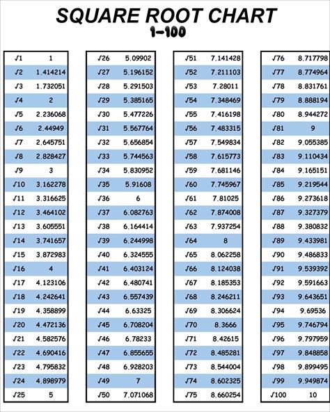 Top suggestions for Square Root Table Printable |