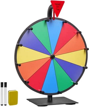 Vevor 12 in Spinning Prize Wheel, 12 Slots Spinning Wheel With Stand, Tabletop Win Fortune Roulette With A Dry Erase And 2 Markers, 6 Colors, Easy Ass
