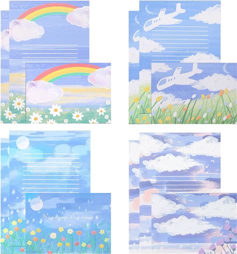 Imagicoo 48 Lined Writing Stationery Paper, Beautiful Designs For Writing Letter, Notes, Invitations, Craft, 8 Different Style (11.4 X 8.26")