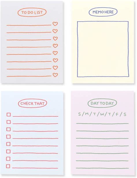 Monolike Memopad Sketch Planning Design SET - 4 Packs, 4 Different Designs, 100 Sheets Per Pad, Total 400 Sheets, Note Pads, Writing Pads, 3.15 X 4.17