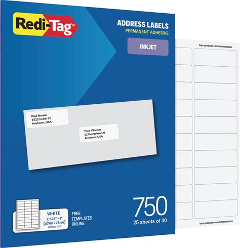 Redi-Tag Address Labels, 750 Blank (25 Sheets Of 30), 1" X 2.625", For Inkjet Printers Only, Free Online Templates (1009571)