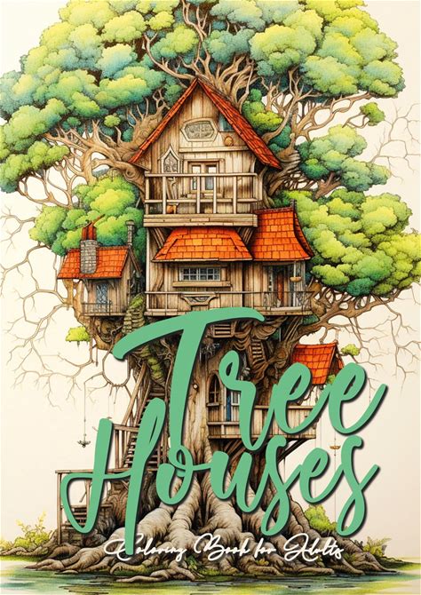 Tree Houses Coloring Book For Adults: Trees Coloring Book Grayscale Tree House Coloring Book For Adults Architecture Coloring Book Tree Houses A4 60 P