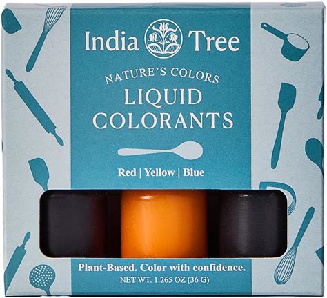 Natural Liquid Food Coloring Set - Plant-Based, Dye-Free, Non-GMO, Allergen-Free, 3 Bottles (Red, Yellow, Blue), 1.265 Oz - India Tree Natures Colors