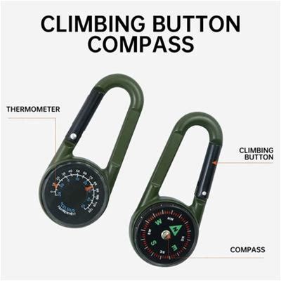Personalised Compass Carabiner - Engraved Adventure Valentines Gift, Keyring, Thermometer, Custom Outdoor Hiking, Camping, Travel, Explorer