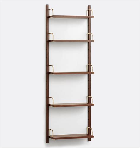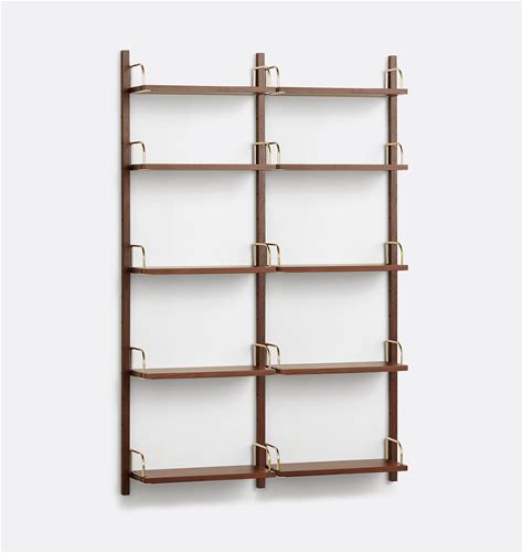 Hart Modular Walnut 5-Shelf Triple Shelving Unit, 24 Inch - Aged Brass