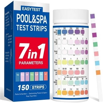 Easytest 7 in 1 Pool And Spa Test Strips, 150 Strips Fast And Accurate Water Quality Testing Kit For Swimming Pool And Hot Tub, Strip Detects Ph, Chlo