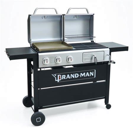 Brand-Man Propane Gas And Charcoal Grill With Griddle Combo Dual Fuel BBQ Grill With Lids For Outdoor Barbecue, Black