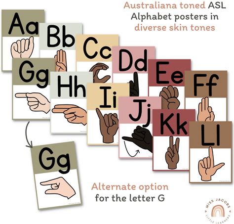 ASL Alphabet Poster, Printable American Sign Language Alphabet Posters + Cursive, Australiana Classroom Theme Editable Educational Posters