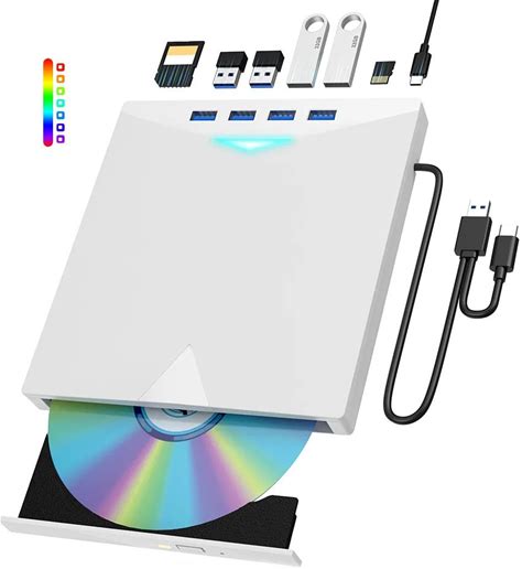 7 in 1 USB3.0&Type C CD DVD Recorder Player Writer External DVD Burner Optical Drive Portable Reader