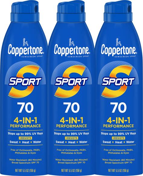 Coppertone SPORT Sunscreen Spray SPF 70, Water Resistant Sunscreen, Broad Spectrum SPF 70 Sunscreen, Bulk Sunscreen Pack, 5.5 Oz Spray, Pack Of 3