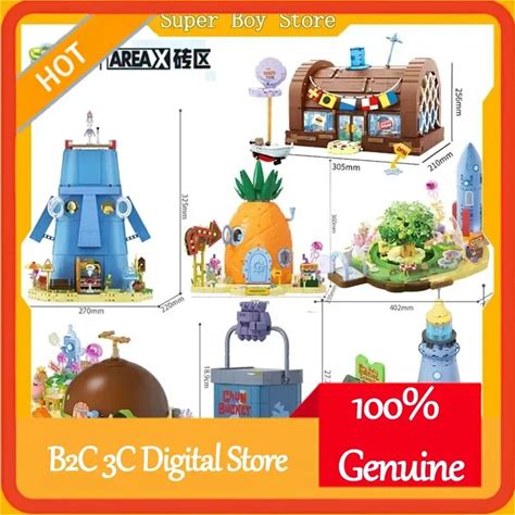 Area-X Spongebob Krusty Krab Building Blocks Set Interactive Brick Toy Burger Restaurant Model Blind