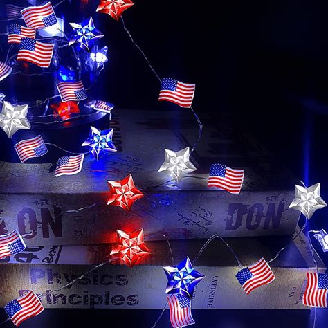 Patriotic String Lights 13ft 40Leds With Remote For 4th Of July Independence Day 250th Anniversary Memorial Day, Stars And Red White Blue String Light