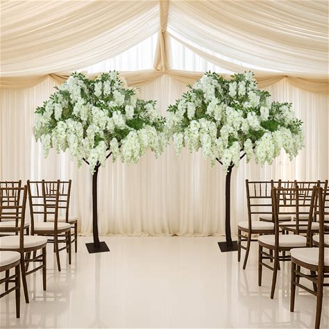 5ft Freestanding White Wisteria Tree - Romantic Faux Flower Decor For Aisles & Photo Backdrops - Weddings, Events By Efavormart Party Shop