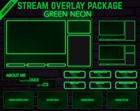 Green Neon Animated Twitch Overlay Package: Minimalist Stream Theme