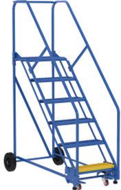 Vestil 6 Step Steel Rolling Ladder, 50 Degree, 24"W Grip Strut Step, 350 Lb. Capacity, LAD-6-14-G-EZ