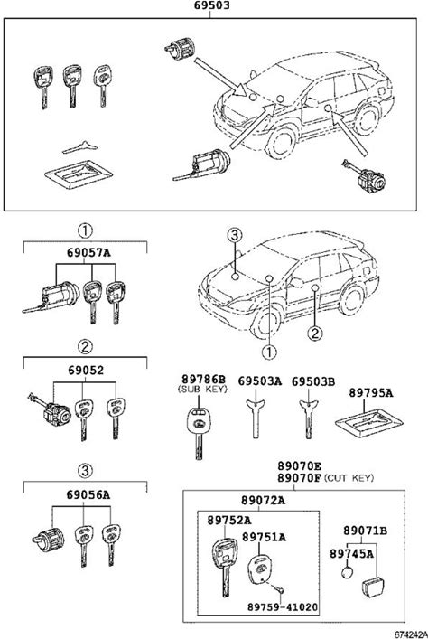 Lexus RX 350 Keyless Entry Transmitter - 899040E160. LOCK CYLINDER SETGGL2.