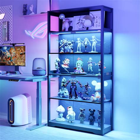 70.8" H Glass Display Cabinet - 5-Tier Curio Cabinet With RGB LED Lights For Collectibles - Large Glass Display Case With Human Body Sensor For