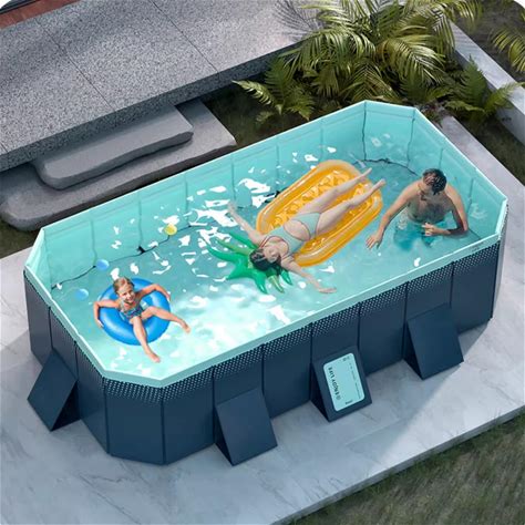 Foldable Swimming Pool,Large Outdoor Swimming Pool In Summer, Rectangular Above Ground Swimming Pool,Portable Non-Inflatable Pool With Drain Plug And Drain Hole For Family Pool, Summer Water Party(Gray/6347.218.5Inch)