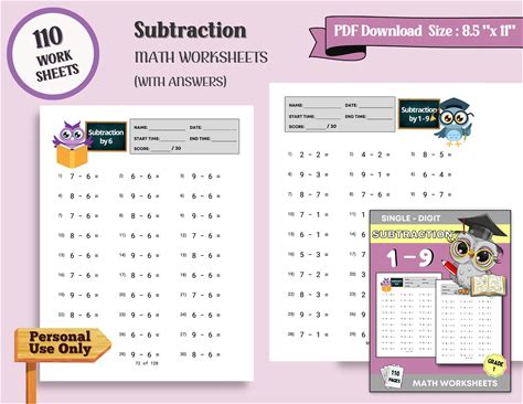 1st Grade Subtraction Worksheets For Kids, Montessori Math, Grade 1 & Preschool Kids Worksheets, Instant Download, Homeschool Printable PDF