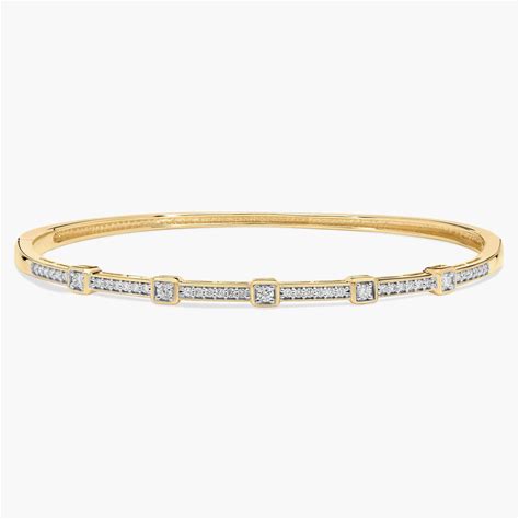 Blue Nile Baguette Diamond Bangle Bracelet In 14K Yellow Gold (1/5 Ct. Tw.), Womens And Mens Jewelry