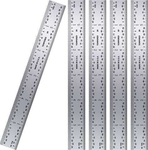 PEC Tools 6" Machinist Metal Ruler (5 Pack), 1/25" Thick X 3/4" Wide,Satin Chrome, High Carbon Steel Ruler Scale With Markings 1/32", 1/64", 1/10", 1/