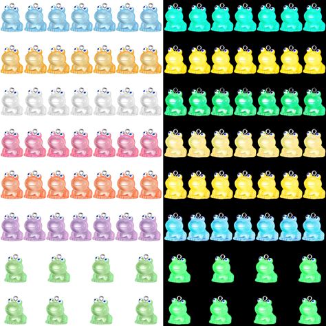 Chitidr 50 Pcs Luminous Frog Charms For Jewelry Making Bulk Cute Animal Pendants Glow In The Dark Green Frog Keychain Charms Small Jewelry Making