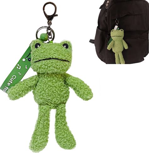 IOFUNOFAN Frog Plush Keychain Cute Kawaii Keychain Bag Charms Accessories Novelty Stuffy Decor Car Keys Christmas Birthday New Year Gifts For Women