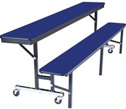 NPS 6' Mobile Convertible Bench Table - 72" Length For School Cafeteria Lunchrooms (CBG72), Persian Blue / Particleboard / T-Molding